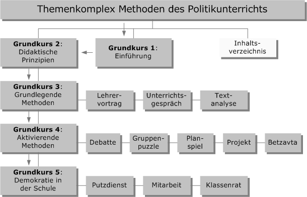 Themenkomplex: Methoden des Politikunterrichts - Überblick Durch Klicken auf die Kästen gelangen Sie direkt zur entsprechenden Seite. Ein schriftliches Inhaltsverzeichnis finden Sie auf der Seite Inhalt |